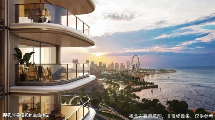 观潮府由招商+华润操刀,全通透弧形飘窗+观景大阳台设计,通透性非常好,每户阳台都很大气,也能最大程度看摩天轮和海景,