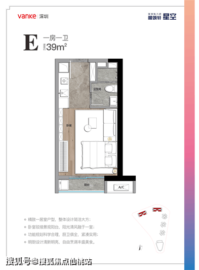 约39㎡产品:一居室户型,设计简洁大方、功能规划科学合理,厨卫俱全,紧凑实用;