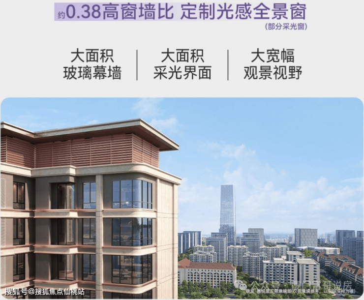 采光升级:全系户型可达3-4面采光,带10-15个采光面,且每个户型的主卧均带一个L型大飘窗。部分户型更拥有270°弧形全景窗,引景入室,视野开阔。