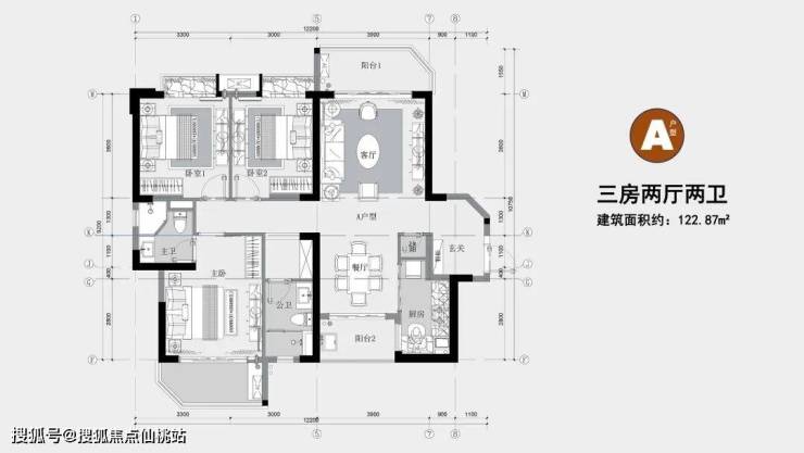 建筑立面风格采用西班牙简约建筑风格,住宅内部空间南北侧均设有阳台或外窗,实现建筑两侧对流通道,明厨明卫。