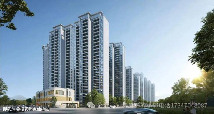 (二期效果图)中建桃李九章二期的建筑设计也颇具特色,采用错位点式布局,形成大中芯景观,建筑立面则以米白和灰色调为主,搭配铝板和不锈钢金属,展现出高级感。项目的二期容积率约为2.7,绿化充足,兼具都市便利与生活静谧。住宅楼层高达21-26层,采用板楼及类板楼设计,并增加了架空层,这样的设计不仅提升了采光和通风效果,也为居民提供了更好的观景体验。