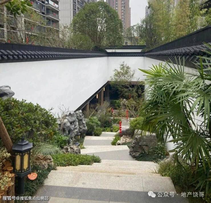 小区还建造了南昌市首个超2000平的下沉式庭院,超大的庭院营造的水景很开阔,并搭配百年红花檵木树,情绪价值拉满。