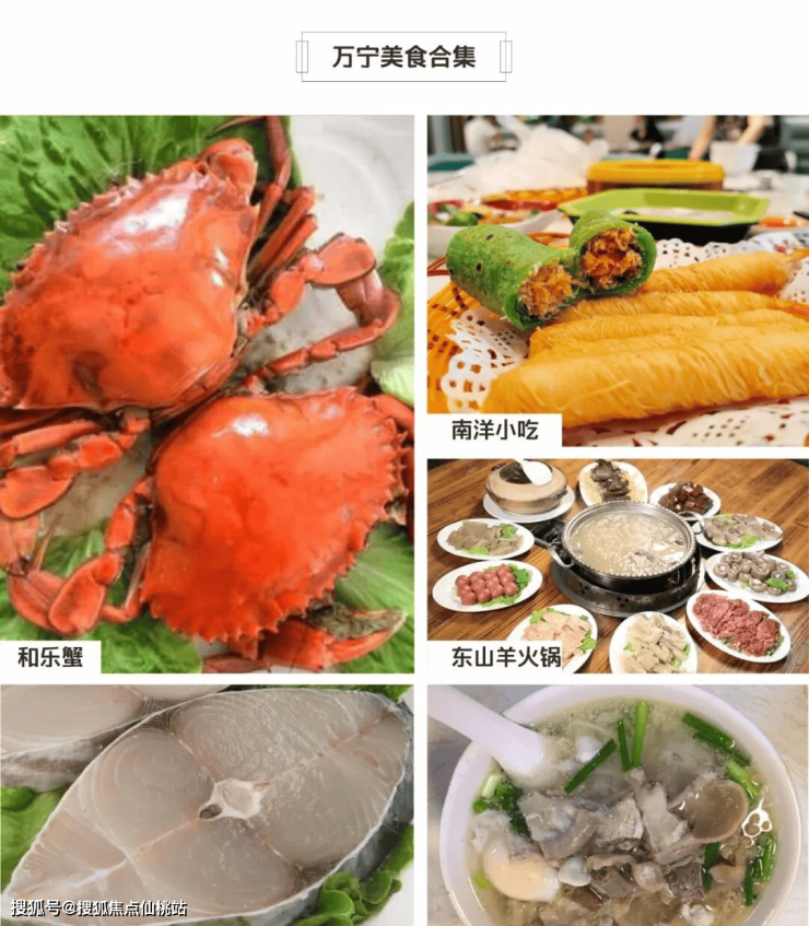 万宁也是海内外吃货的天堂。海南四大名菜,万宁占据2大菜系,东山羊、和乐蟹,还有各种进出口海鲜鱼类马鲛鱼、章雄鱼、以及南洋小吃、椰子粑粑、万宁粉汤、等特色小吃,也能让你大快朵颐。