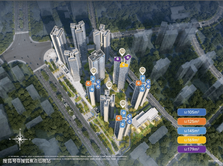在售户型:建筑面积约105-179㎡,涵盖三房至五房,主力户型为105㎡、125㎡、145㎡、169㎡、179㎡。