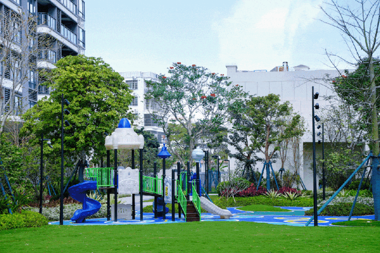 园林、游泳池、儿童乐园等等全部都已经是实景呈现,所见即所得,即买即享受。