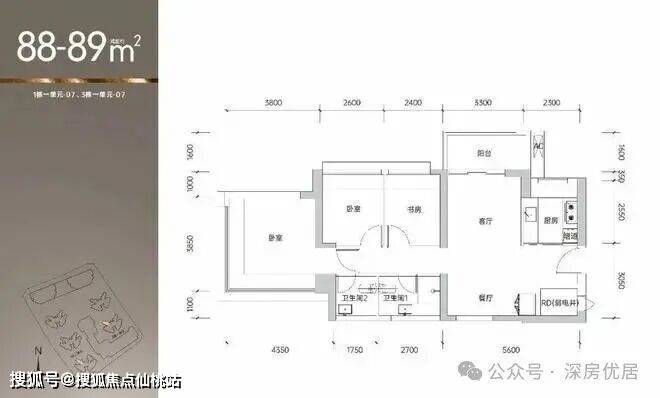 07户型89平米折扣后318-325万南北通透