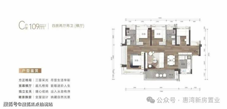建筑面积约109㎡户型-4房2卫(横厅)