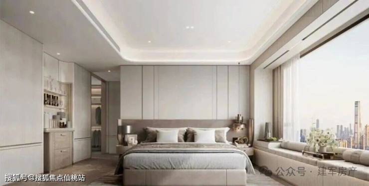 主卧套间实现惊艳三面采光,转角飘窗构筑约270°环幕瞰海视界,全明浴室让人心安。