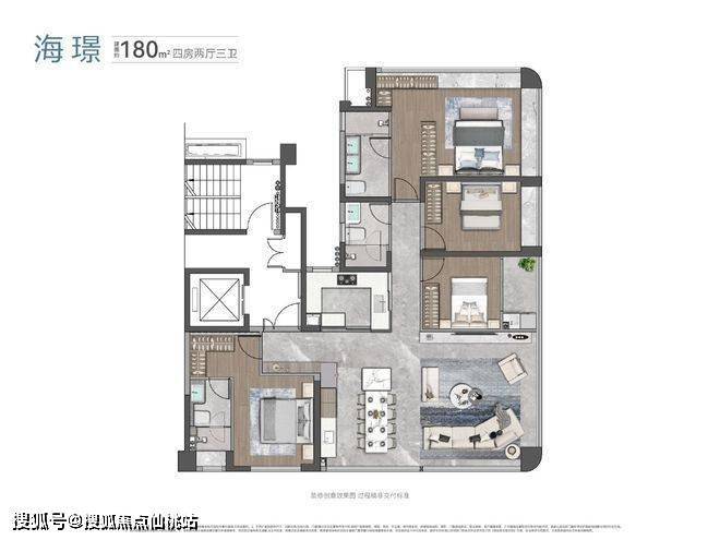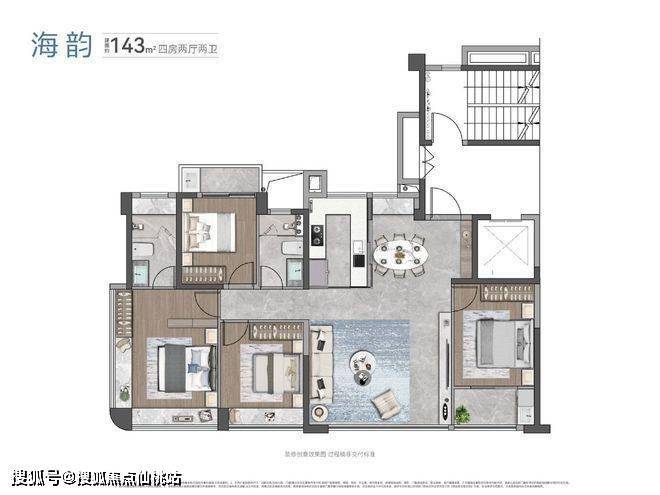遵循现代典雅的对称式美学,大线条建筑构型,两梯两户奢宅规制,纯粹板式设计,造就超大窗墙比,南向超20m极致瞰景(建面约190户型产品),映照湾芯峯景入窗。