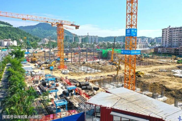 项目工地内,一派热火朝天的开干状态,有挖土机、吊臂、打桩机等重工机械,还有不少工人在作业。