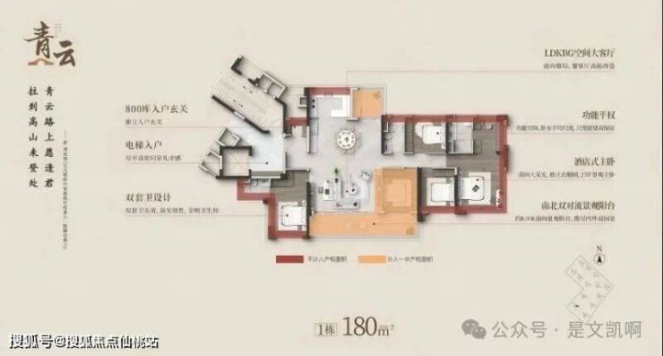 180㎡五房:专梯专户+9米跑道阳台,5.9米大开间客厅,双主套设计,纯改善大平层体验。