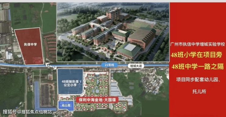 距项目约100m处在建广州市执信中学增城实验学校小学区和对面初中区,已开学。