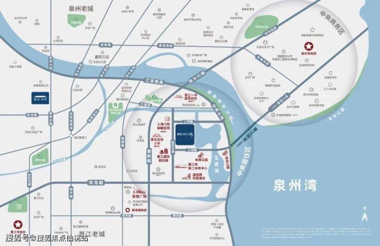 建发·泉州湾海项目位于晋江市晋东新区鞋坊城大道旁,与福建和敏医院、晋江五实小鞋坊城校区隔路相望,且紧邻泉州湾一线临湖,享有独特的景观优势。