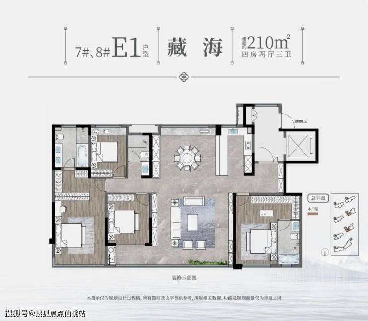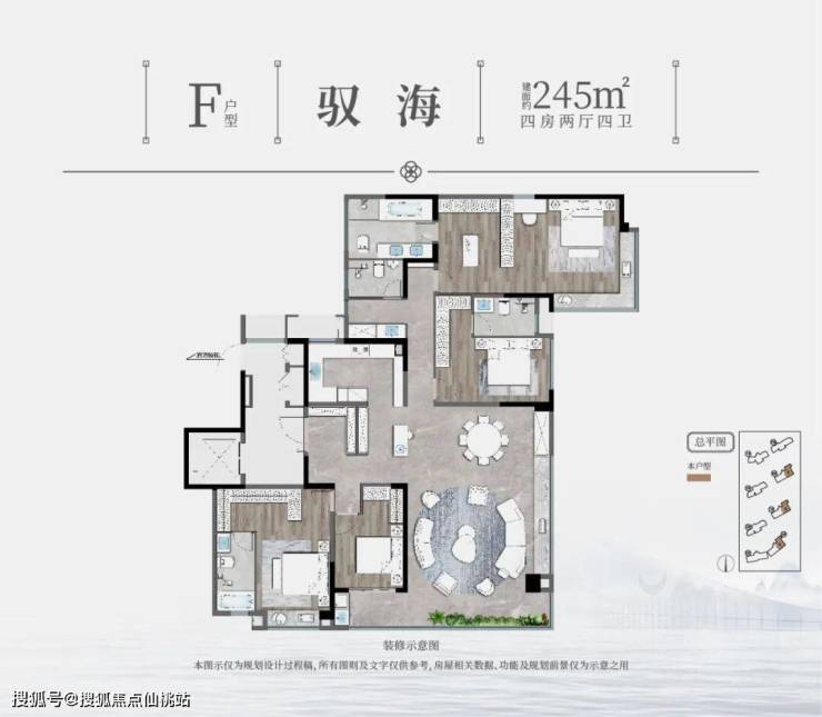 建发·泉州湾海项目共规划住宅389套,涵盖115至245平三至四房产品。其中主力产品为115平三房、131平四房、143平四房、210平四房,四者合计占比84%,次主力为245平四房,占比12%,辅以少量170平四房产品。