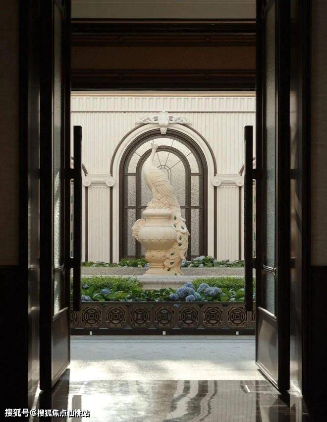 三进庭院将景观升华为宫殿艺术,莲花水钵淬炼赤玉奢石,海棠纹地坪与百年古木低语共叙时光永恒。对称花厅与琉璃游廊,精妙复刻鼓浪屿庄园的诗意画境,步履所至,皆如铺陈人生的艺术剧场。