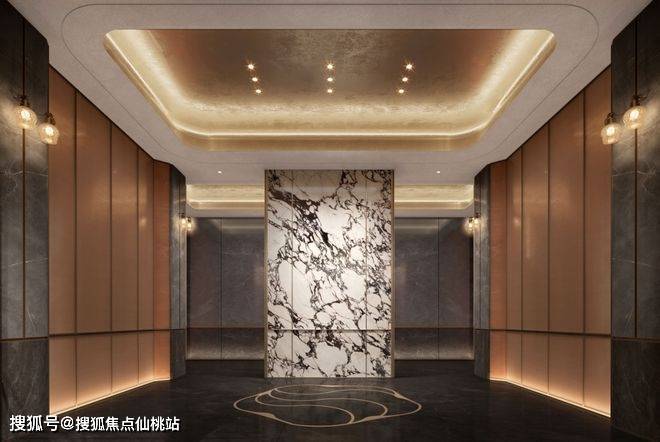 在车库出入口处,榕发·誉湖同样别出新裁,超高挑空设计,业主不管是出门还是归家,皆是满满的仪式感。车库坡道顶面星光照耀着归家的艺术之路,取自劳斯莱斯豪车星空顶设计,熠熠星光点缀着业主的归家之路。坡道两侧由哑金铝板包裹,更显奢华与尊贵。