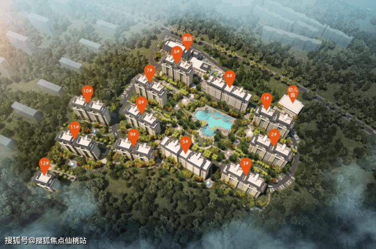 项目共建设10栋总高11层的小高层住宅楼,2栋总高8层的小高层住宅楼,一栋总高6层的酒店以及一栋总高2层的幼儿园。