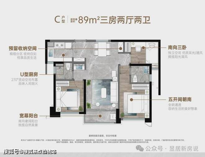 项目共有4个住宅地块和1个约8万方的自持购物中心。在售户型有约65㎡2房、77-89-105㎡3房、115-119㎡4房,少量185-200㎡瞰海大平层。