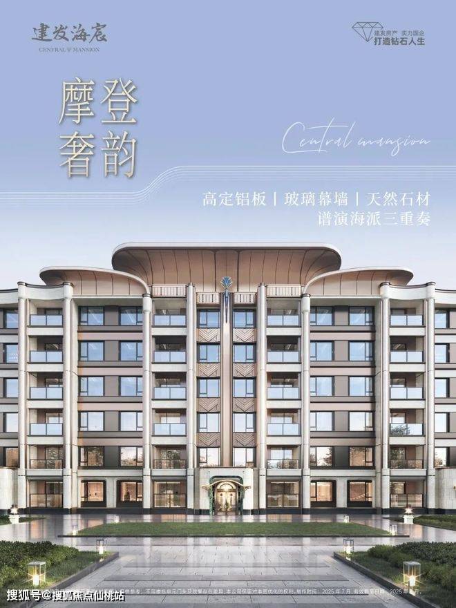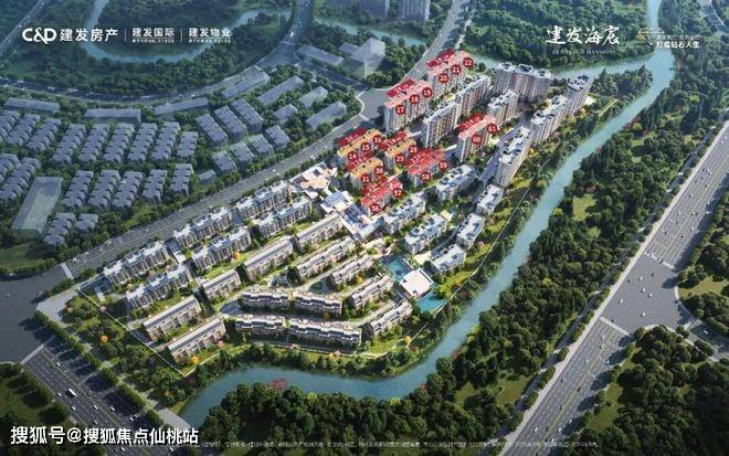 建发「宸系」中式作品,铝板与玻璃幕墙外立面,配园林景观。约1150套房源高低配,限高40米,含小高层、洋房、叠墅产品,满足刚需与改善需求。
