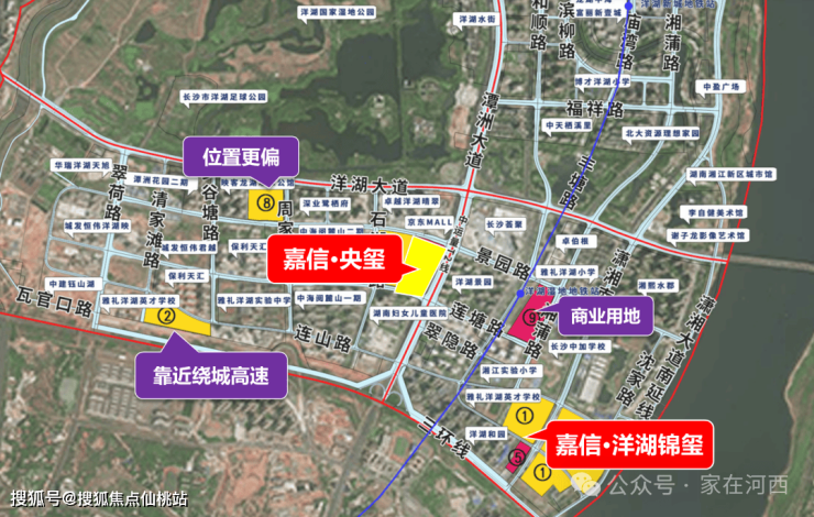 很明显,洋湖剩余的住宅用地要么位置更偏,要么紧邻绕城高速等不利因素,远不如嘉信·央玺优质。从土地供应角度而言,嘉信·央玺就是洋湖最后的一块绝版宝地。
