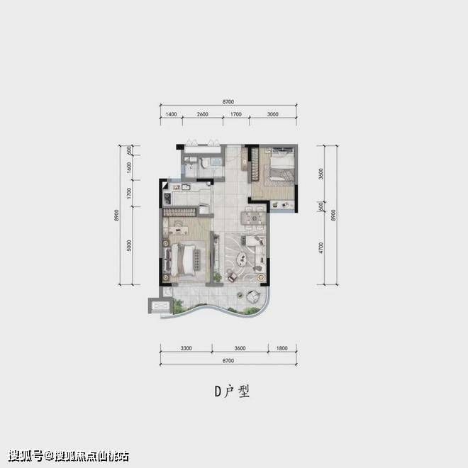 [D户型约85㎡两室两厅一卫]