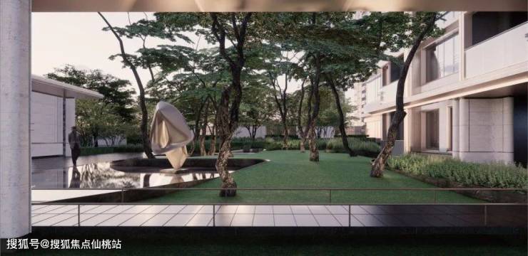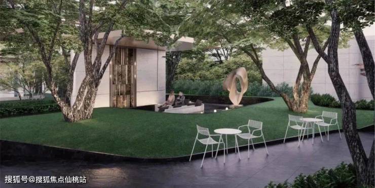 一路定制的游园式归家动线,让业主目之所及均为风景;中央会客花园内,绿植四季皆景,中央庭院景观轴上,则布局双下沉式庭院增添社区精致错落的氛围,提升归家仪式感的同时,给予业主家的温馨。