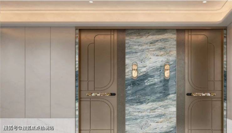 再仔细看细节,顶部香槟金色格栅塔冠以及壁柱采用香槟金和白色色调,将海派与现代之美生动演绎。