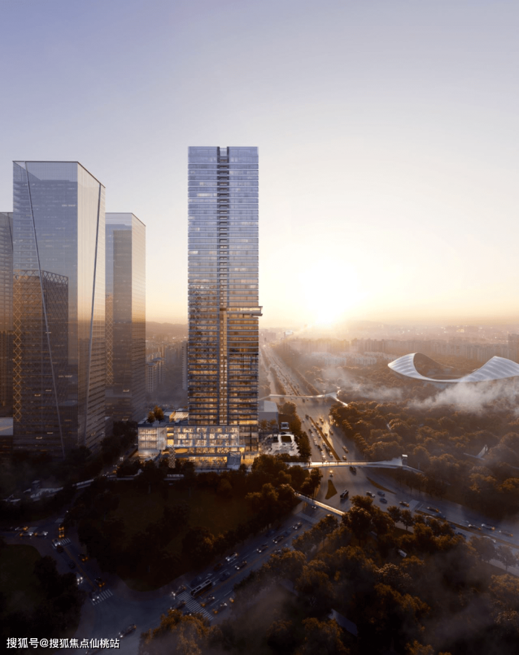 华侨城宝辰,高度约230米,总建面约13.5万㎡,是片区天际线的“制高点”代表,致力于打造集城市中心丰盛配套、公园绿地、精品地铁商业、互联社交空间为一体的区府CBD湾芯公园资产典范。
