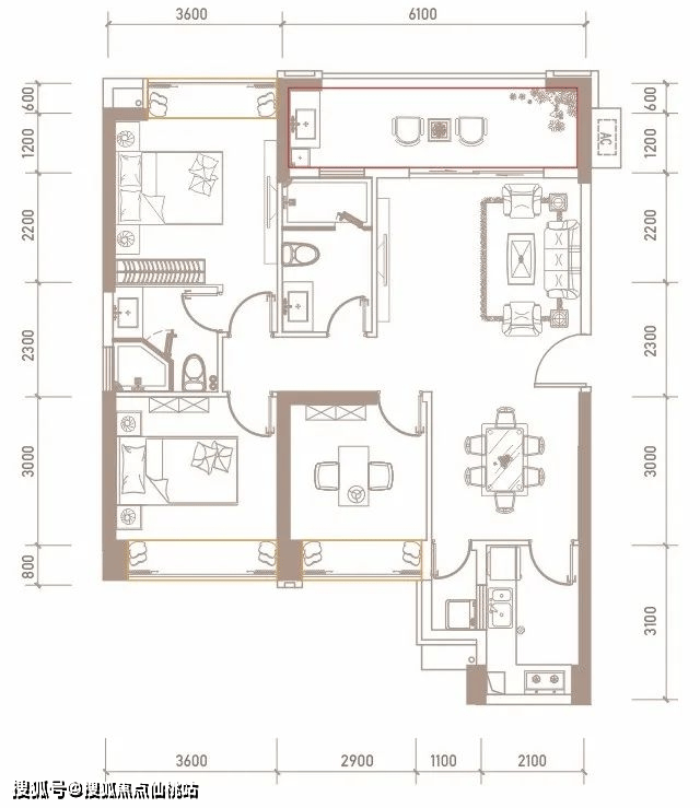 主力户型:【户型面积】建面约100㎡ 【房型】三房两厅一卫