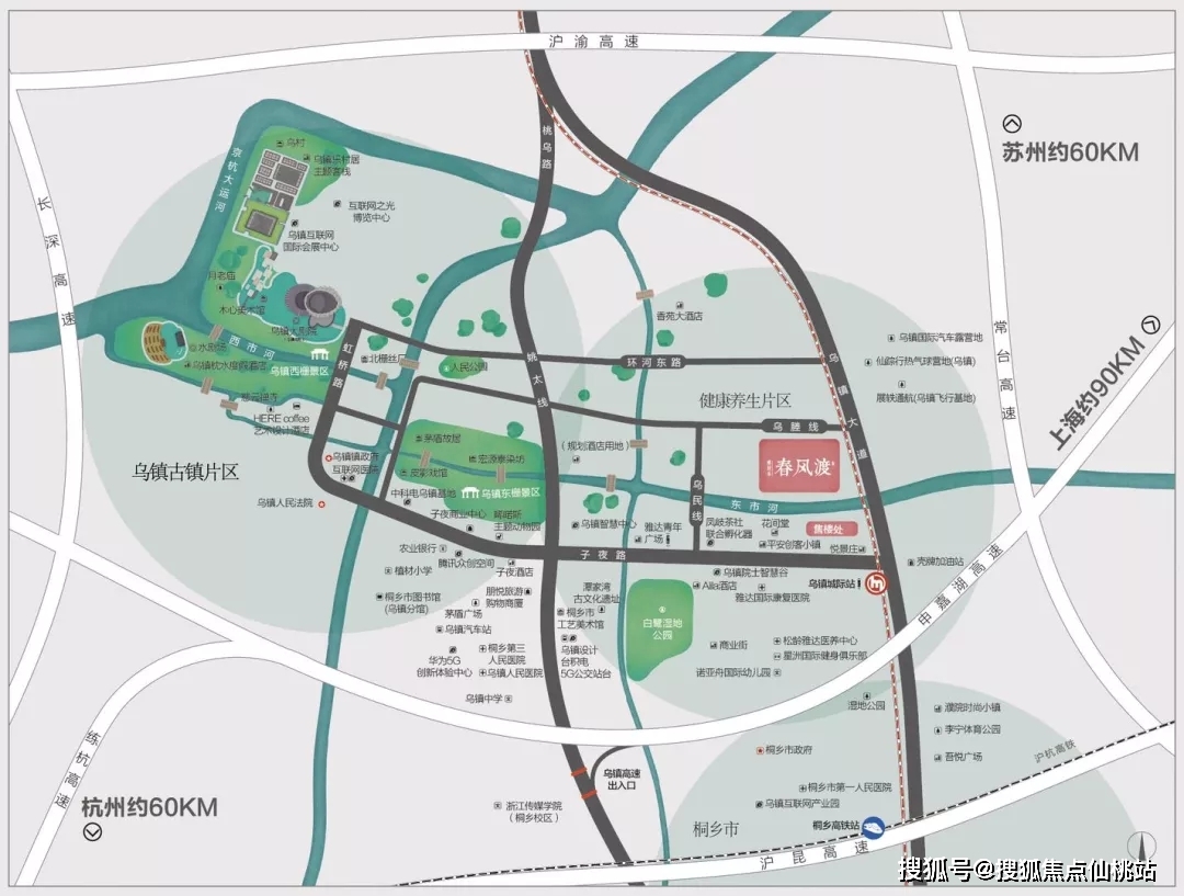 医疗配套:雅达国际康复医院、松龄雅达医养中心、乌镇互联网医院、桐乡第三人民医院;