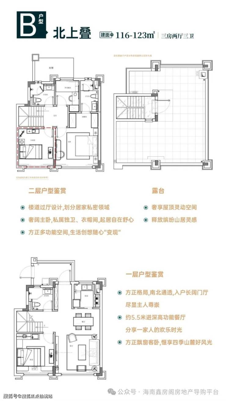北上叠:建筑面积约116-123㎡三房两厅三卫