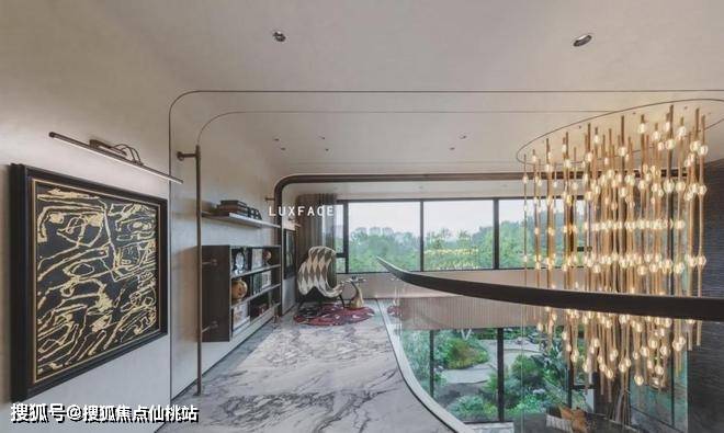 奢跃缔造奢华落地窗,近7米挑高大客厅突破常规层高限制,采用液态金属材料作为背景墙,为俯瞰最美河景提供了极致优越的居住体验!