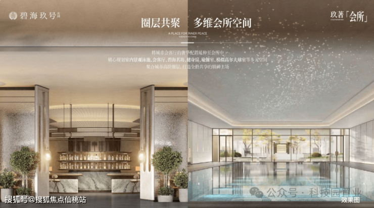 涵盖室内景观泳池、会客厅、碧海茗坊、健身房、瑜伽室,沉浸式室内高尔夫球等多元化空间,打造全龄共享的精神主场。