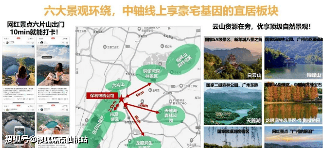 广州中轴线上最具景观资源的一段,白云山、南湖景区、天鹿湖、帽峰山、六片山、龙洞生态景区,六大生态景区环绕,享千万级云山视野。