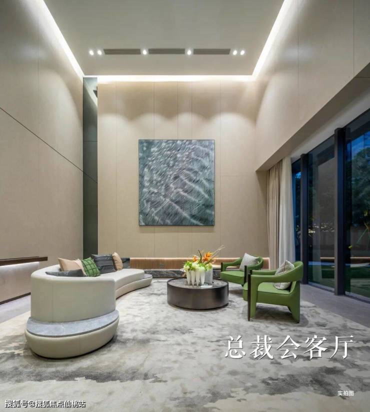 作为公司与家的中转站,入户大堂设置了沙发接待区,柔软舒适的座椅,格调高雅的艺术空间,给予置身高级会客厅的体验。