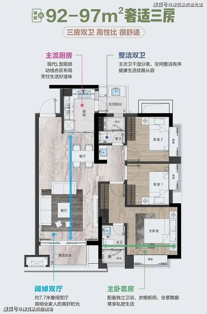 朗豪公馆深入了解到城市奋斗者的居住需求,特别打造建面约77-98㎡的高拓三房,兼顾建筑美学与生活尺度。