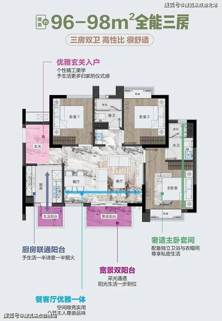 | 建面约96-98㎡样板房实拍图,左右滑动查看