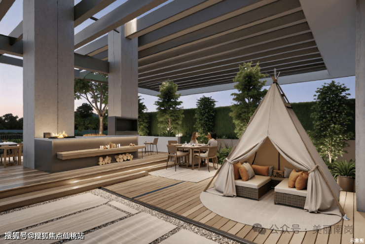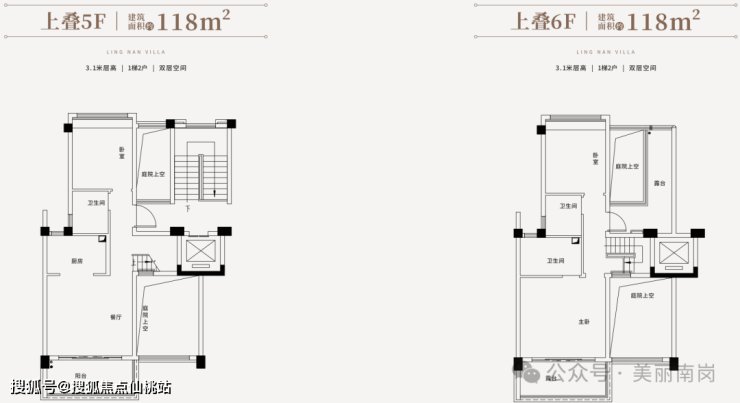 √立体墅居 尺度升级:下叠首层约3.4米层高墅厅,气派尊崇。约7.4 米宽幕阳台,享270°环幕视野;上叠最大约 72㎡星空露台,揽清风明月。