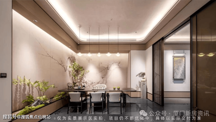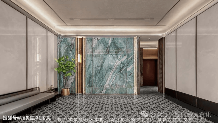 首层门楼均以“高门大屋"为底,门前太湖石枯山水、华纹地砖,与约2米高的罗汉松相映成趣:入户精装大堂,臻选翡翠绿奢石,搭配定制弧边工艺,匠造雅致归家空间。