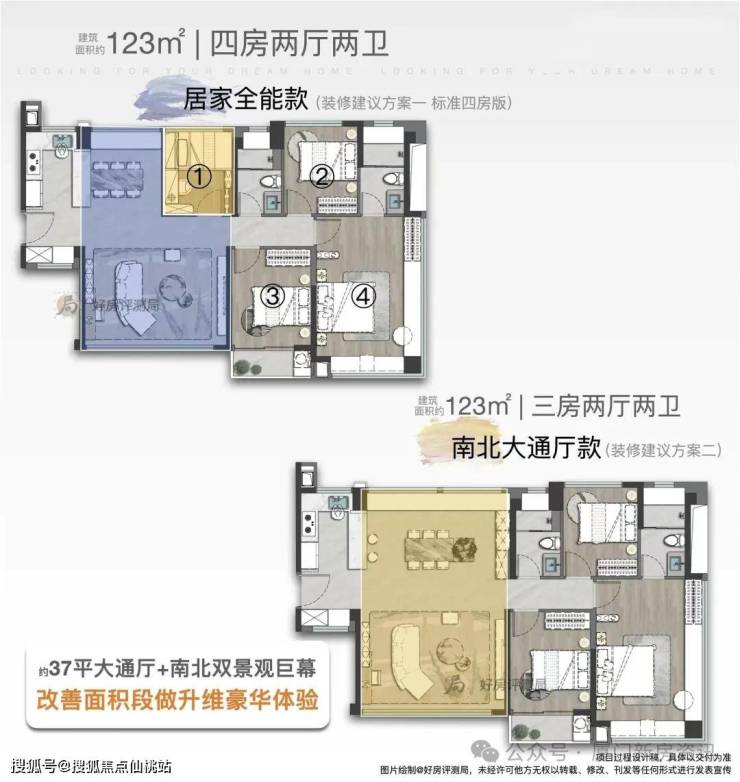 其中,建面约123㎡三至四房,以灵动格局打开百变生活。