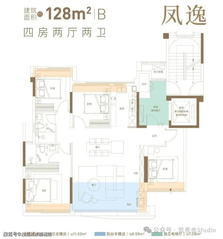 建筑面积约128平方米户型,实现了一梯一户的尊享配置,尽享私密空间。在传统户型受限于主卧独大、次卧狭小的局限时,左海金山文翠项目突破局限,四个卧室均拥有近3米的宽敞面宽,满足三代同堂的生活需求,无需妥协。