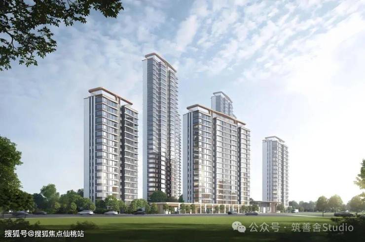 打造“金冠凤首”独特诗意人文风格海派建筑,以“翱翔天际”的流畅建筑曲线与无限延伸的镜面天幕立面,绘就金山居住美学新境界。