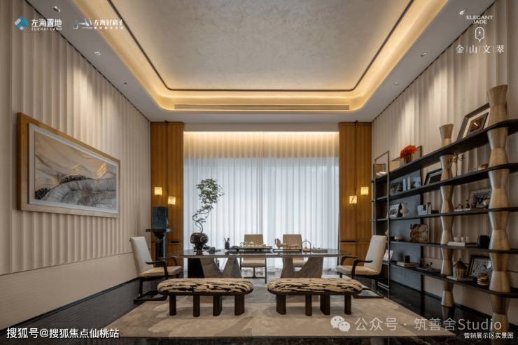 茶室,喧嚣中的一方净土,深邃的墨色纹理铺陈出茶道的静谧氛围。洁白如晶的纹路,犹如轻纱缭绕,淡淡的茶烟在宁静的空间中晕染出柔和的光晕,为这片空间注入了温润的气息和悠扬的韵律。