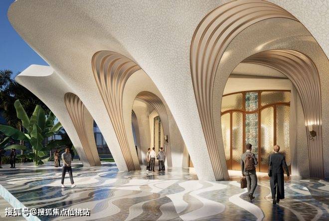 大量运用了流动的曲线元素,打破了现代奢宅的极简冷淡工业风,更赋予建筑一种灵动的美感。