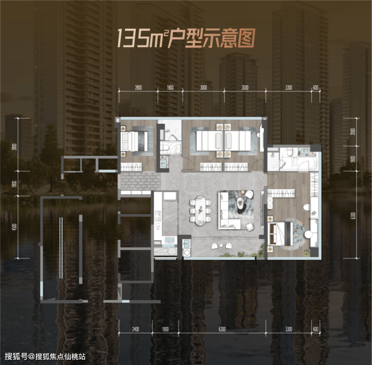 在铂世湾二期143㎡户型中,近50㎡的LDKB区域,270度景观视野,加上南向超大阳台,整个L型客厅及阳台区域拥有超过16米的连续景观视野。客厅、主卧双全景舱,充分体现了豪宅产品的“景观价值最大化”。