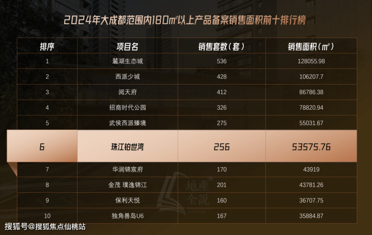众所周知,2024年是成都高端市场极其“内卷”的一年,各种“回归主城”的论调之下,“5+2”区域是绝对的高端主战场。除了高新南区去年因为新盘供应“断档”而没有项目上榜,天新、武侯、锦江、青羊均有项目位列榜单前十之中。来自二圈层温江的珠江铂世湾,显然是最“不按常理出牌”的那一个。