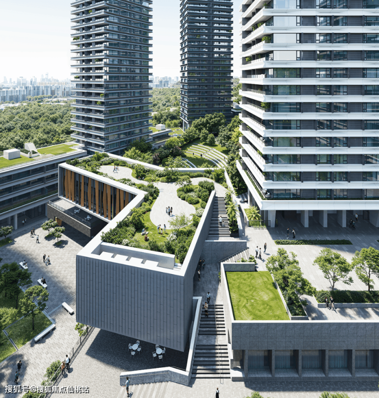 采用高层塔楼 + 多层板楼组合规划,以“方塔”布局与台地式“多个地面”系统为特色,最大化融合公共空间与自然生态,建筑质感与居住舒适度双双拉满。