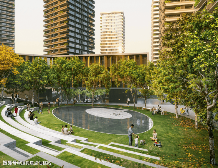 项目精心规划全龄多元公共空间,涵盖儿童游乐区、宠物专属公园、休闲广场、社区商业、音乐草坡及露天室外剧场等。