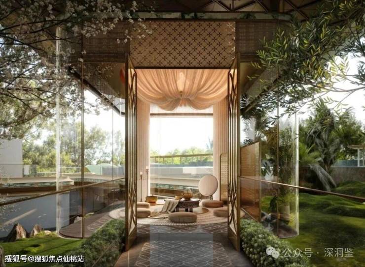 奢阔尺度的冥想空间、能量运动舱,配置巨幅落地玻璃,不仅引光入室,更将繁花绿意与下沉庭院的水景尽收眼底,实现建筑、自然与艺术的无声交融。