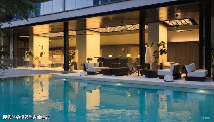 中轴水景如一条流动的蓝丝带,两侧延展出一片开放而亲密的泛会所空间——它不设围墙,却自有边界,不标功能,却处处可用。